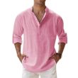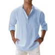 Cotton Linen Hot Sale Men's Short-Sleeved Shirts Summer Solid Color Henley Collar Casual Beach Style Hawaiian Vacation