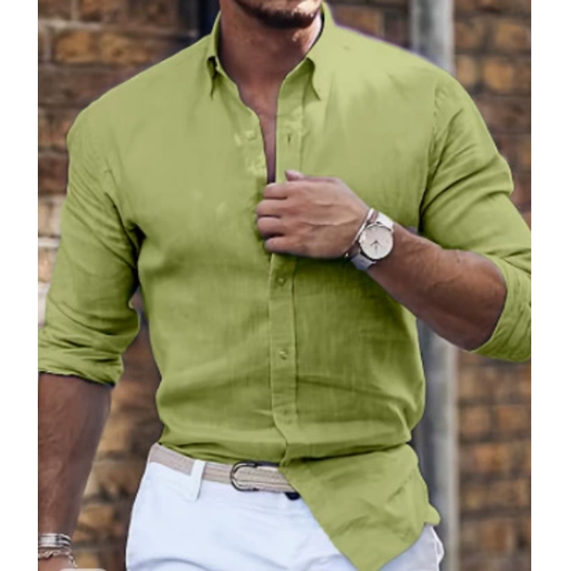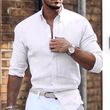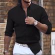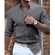 Cotton Linen Long Sleeve Shirt Solid Color Polo Collar Casual Style Shirt Dark Gray XXL