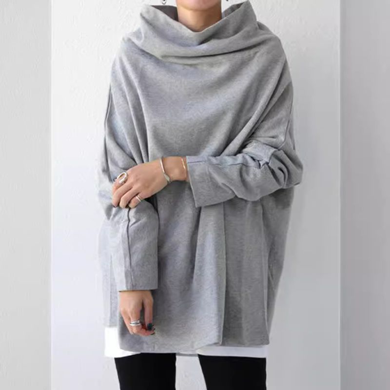 Cotton Pullover Round Neck Loose Turtleneck Long Sleeve Gray S
