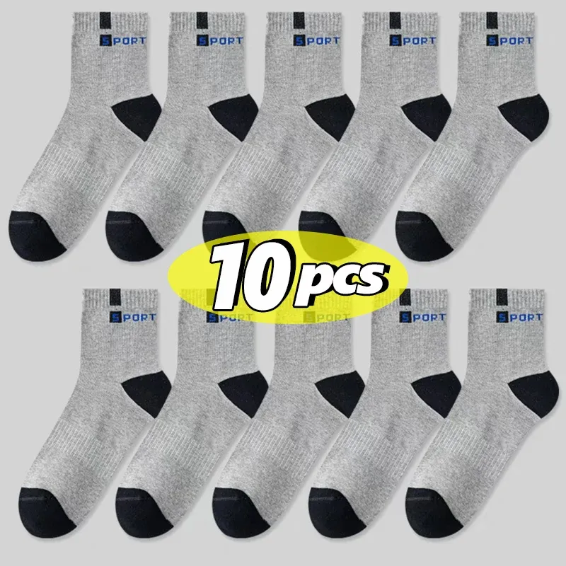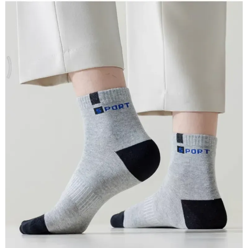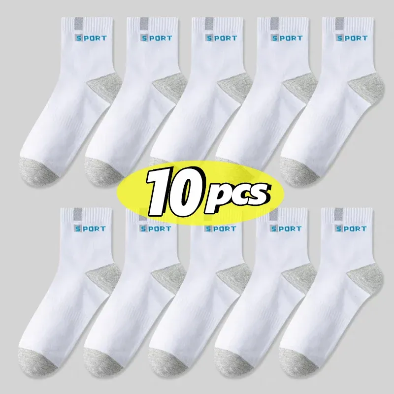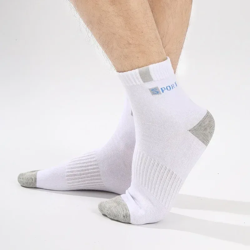 Cotton Sock for Men Sport Breathable Soft Letter Fashion Sneakers High Elastic Middle Tube Stocking Towel Sox Summer Running