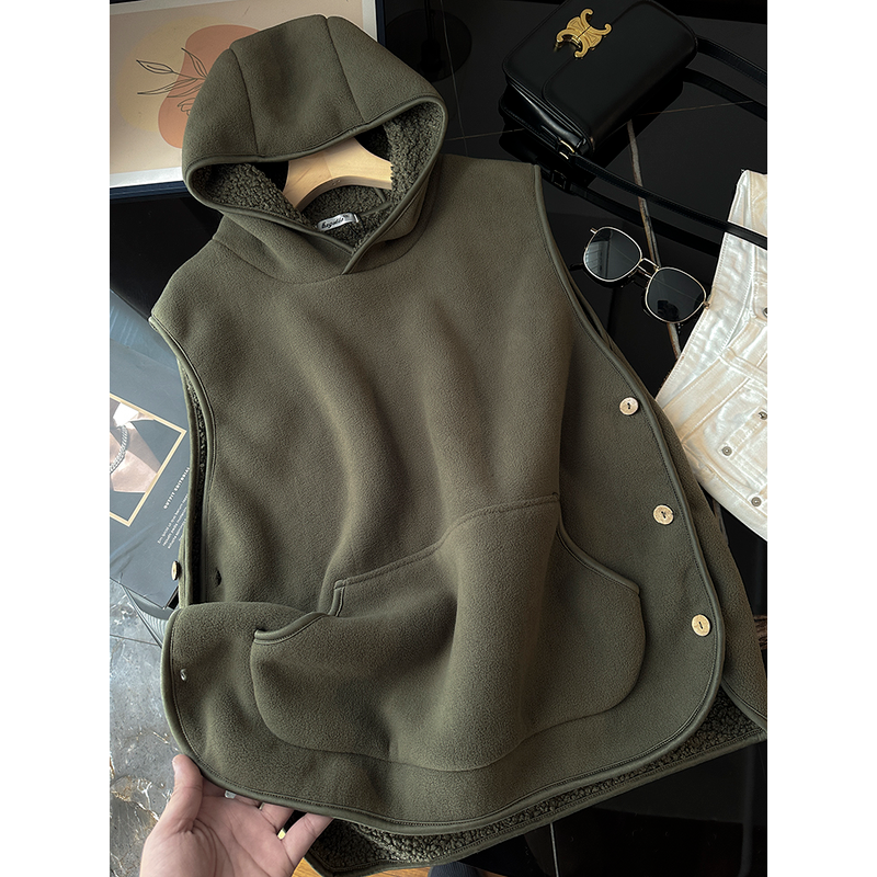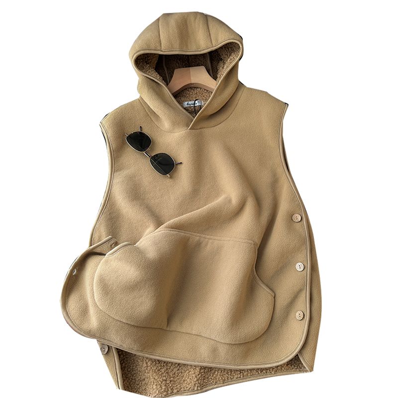 Couple's Lambswool Fleece Vest Warm No Hat Brown 2XL