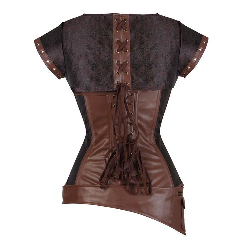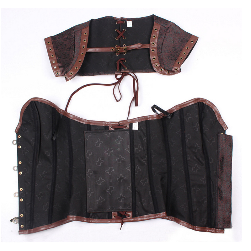 Court Gothic PU Retro Fashion Luxury Sexy Lock Corset Brown M