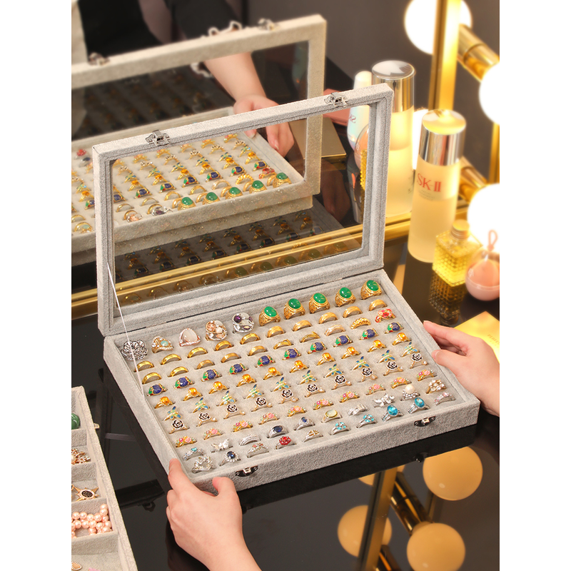 Covered Velvet Hundred-digit Ring Box Storage Box Large-capacity Jewelry Box Pair of Ring Boxes Jewelry Box Stall Display Box