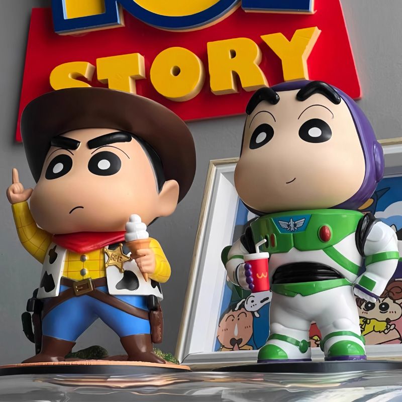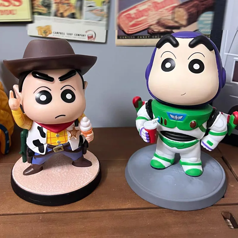 Crayon Shin chan Woody Buzz Lightyear Cowboy Handmade Model Decoration Doll Birthday Gift Doll GK Shin chan Series