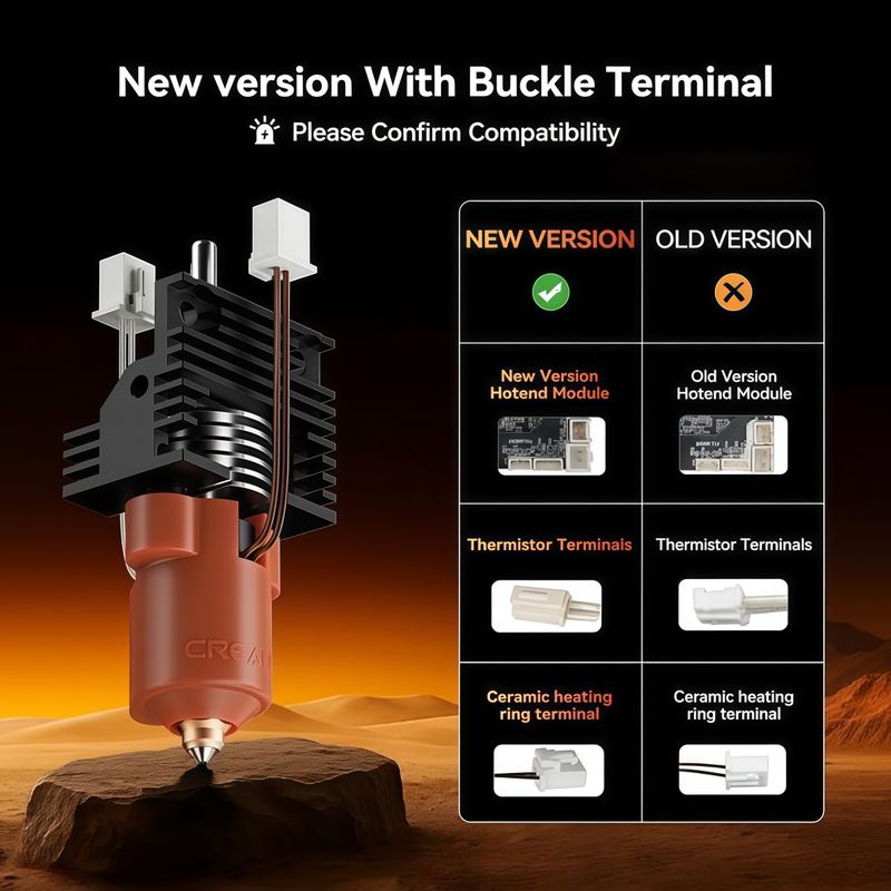 Both types of hot ends are the latest version of Creality original, with the only difference being whether they come with heat dissipation blocks. Both are suitable for K1 Max/K1C/K1SE, please feel free to purchase with confidence