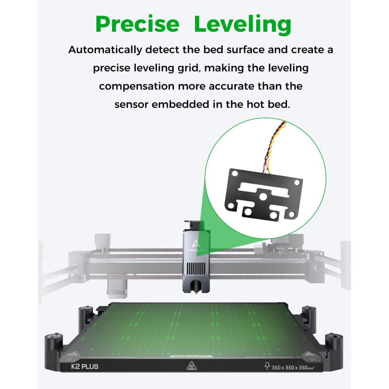 Precise Leveling: Automatically detecting the heated bed surface and creating an accurate leveling mesh, K2 Plus Auto Bed Leveling Sensor delivers more precise leveling compensation than embedded bed sensors