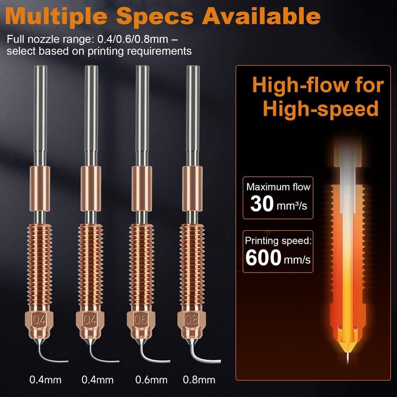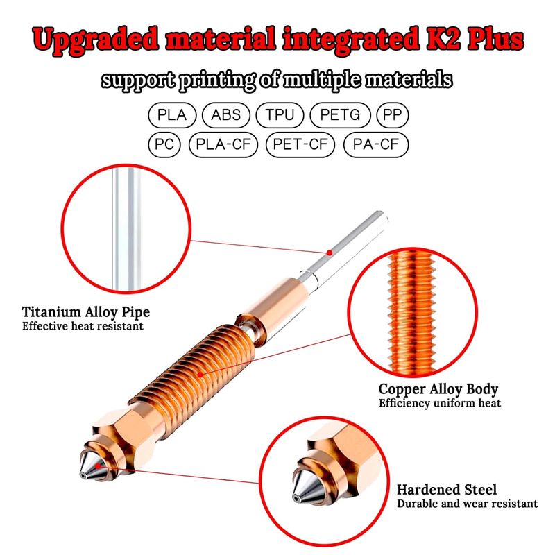 Official Guarantee: The integrated nozzles are designed for Creality K2/K2 Pro/ K2 Plus 3D printer. Package list: 0.2mm, 0.4mm, 0.6mm, 0.8mm, 1.0mm