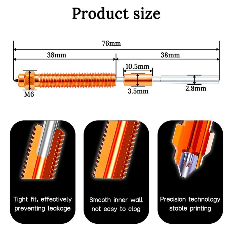 Precision Detail: Tightly fit joints effectively prevent filament leakage during printing. With inner hole roughness Ra≤0.4, ensuring smooth filament feeding.