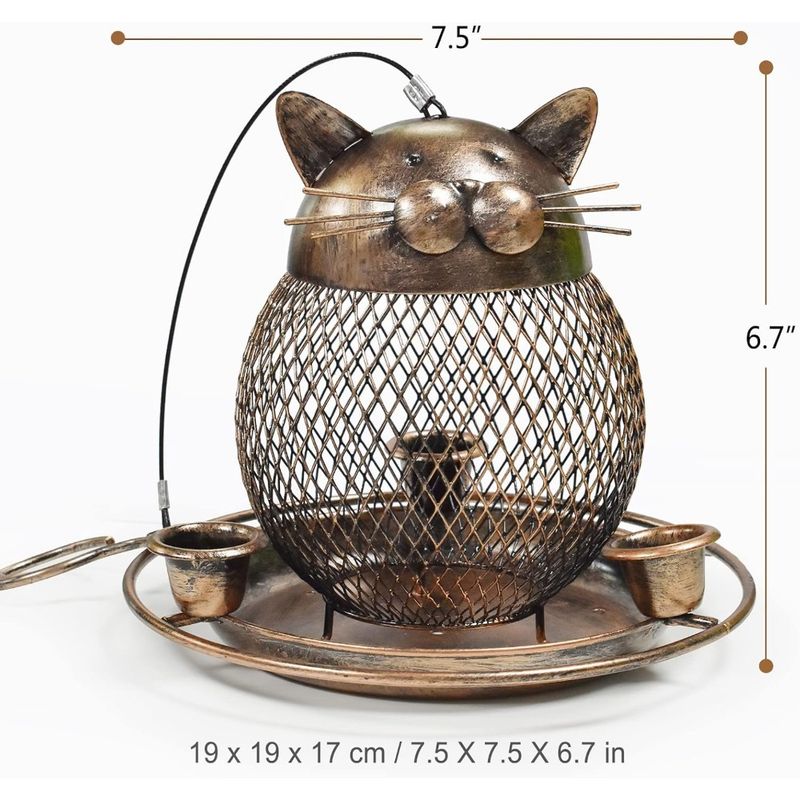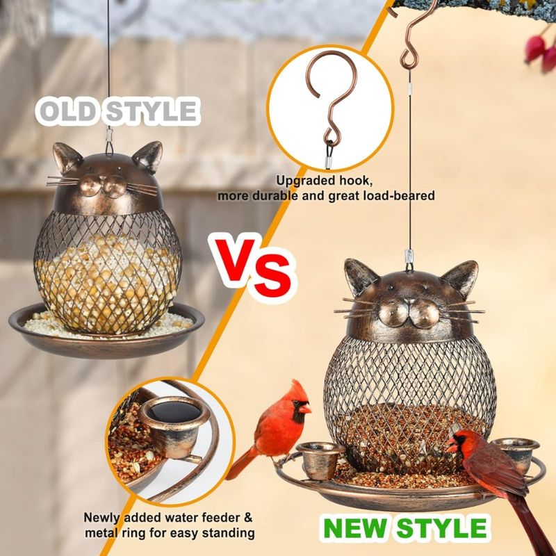 【CUTE CAT SHAPED】This upgraded bird feeder base provides a lot of space for birds to roost and with 3 waterfeeder cups for birds to drink water. The bird feeder hanger can not only feed birds, but also serve as outdoor decor. Unique cat shaped design bird feeder will be a beautiful landscape to your garden.