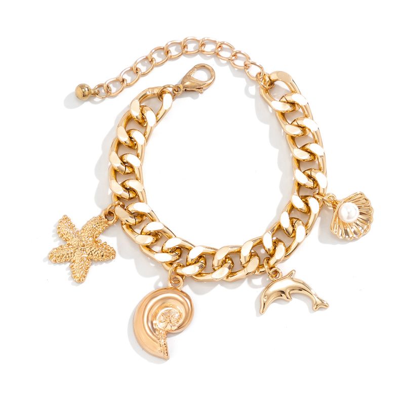 Creative Boho Conch Dolphin Starfish Pendant Choker Necklace Bracelets Women Trendy Vintage Tassel Chain Grunge Jewelry Fashion Jewelry Bracelet Gold