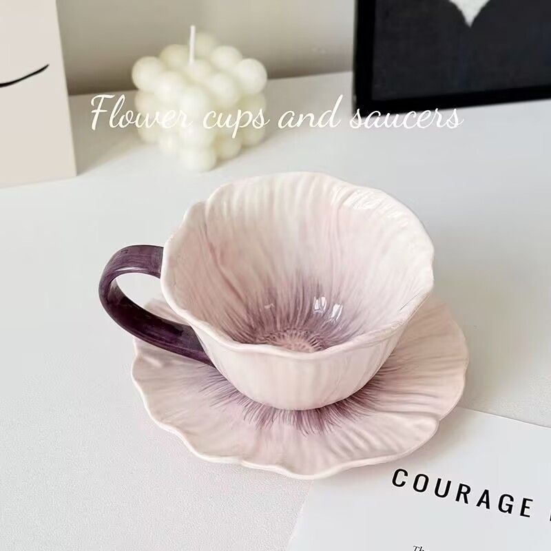 Creative Ceramic Set Water Cup and Disc Flower Decoration Cup Exquisite Latte Coffee Cups Household Breakfast Oatmeal Mug