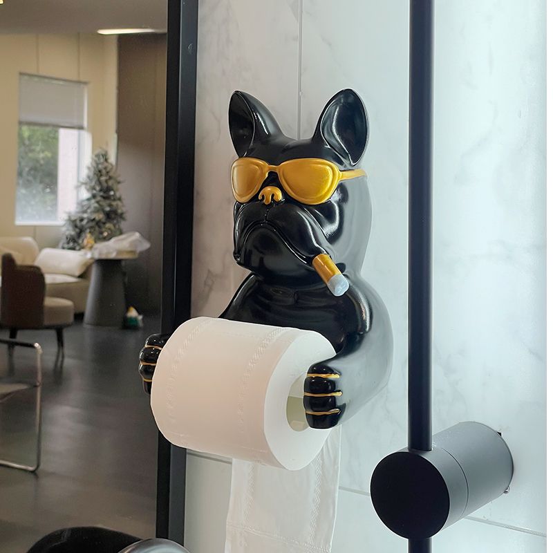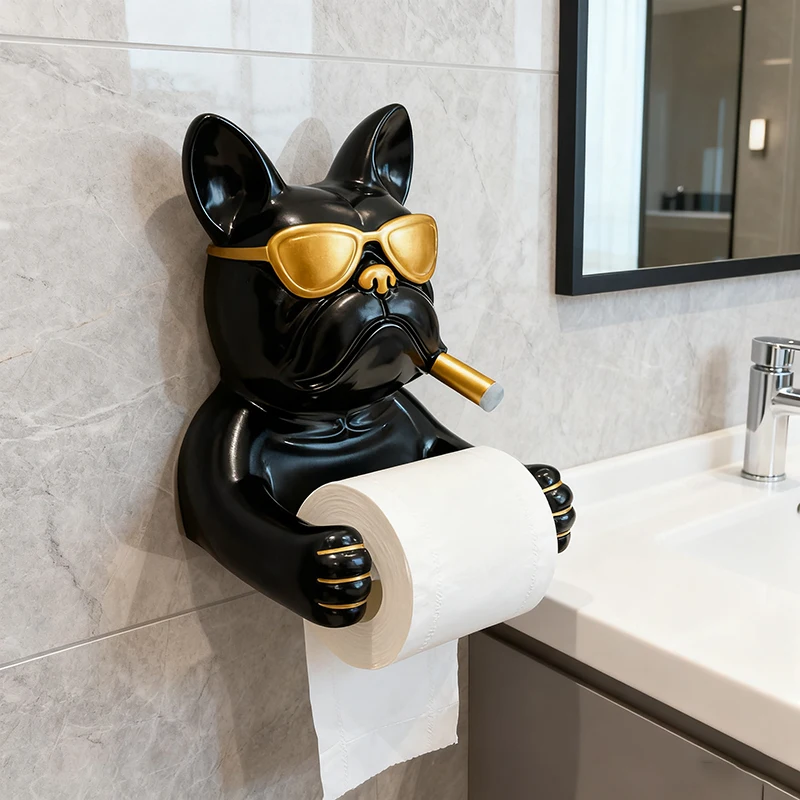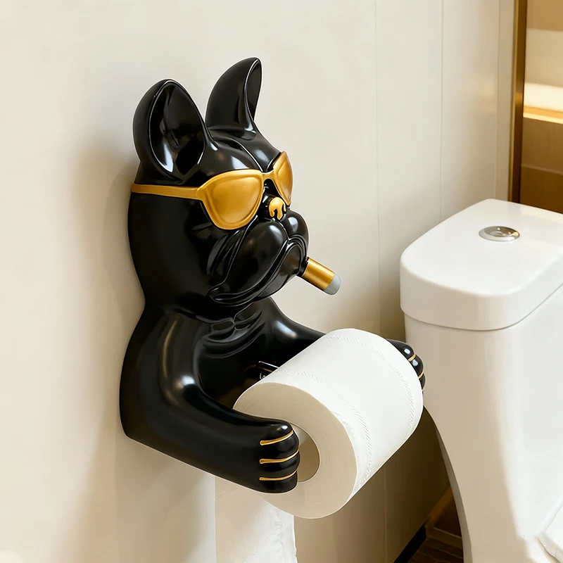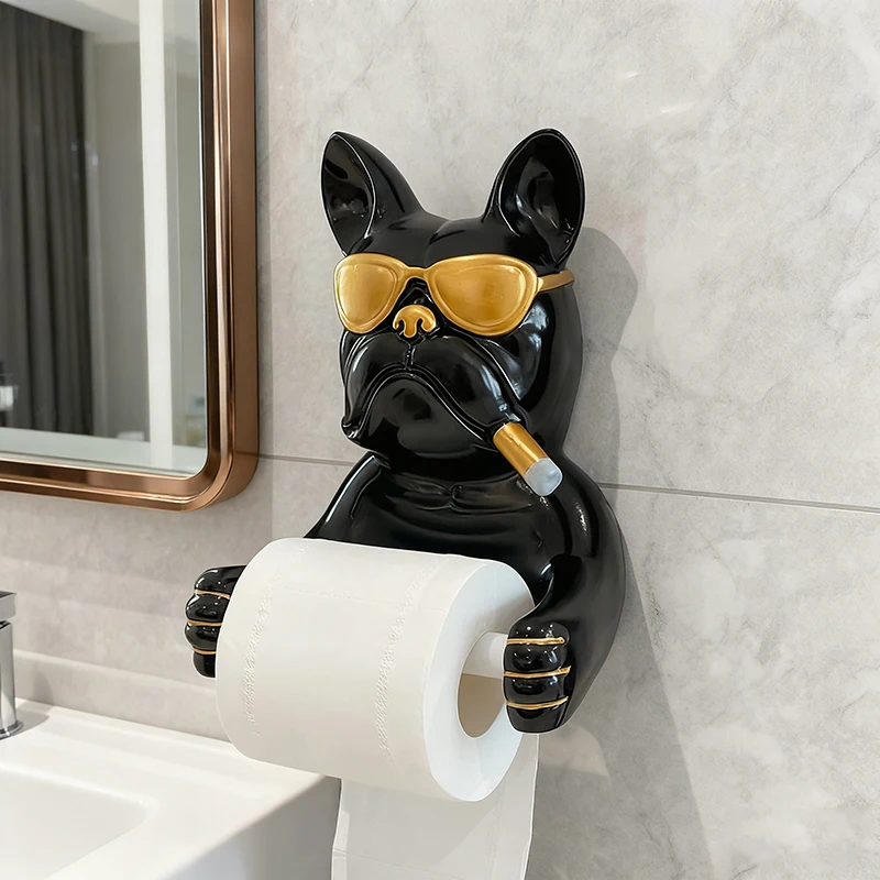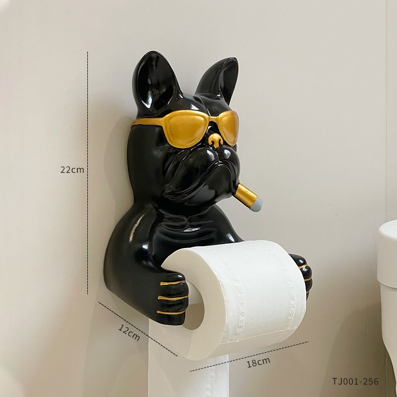 Creative French Bulldog Roll Paper Tube Bathroom Toilet Tissue Holder No Drilling Wall Mounted Storage Rack Decoration