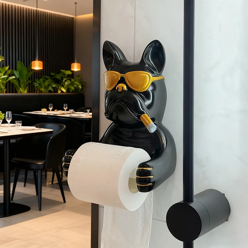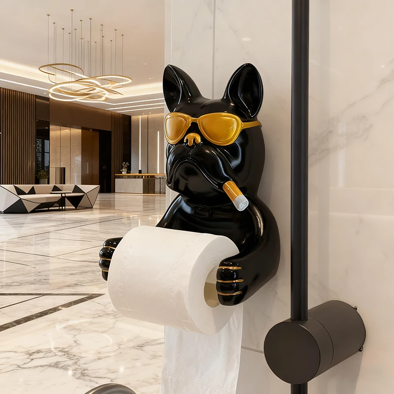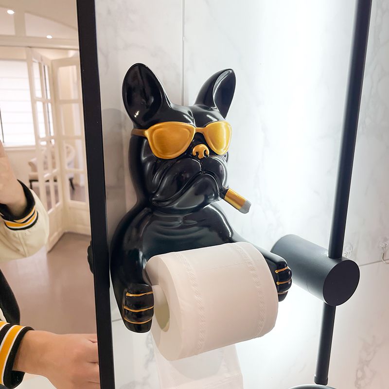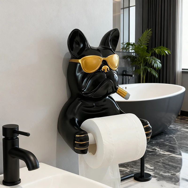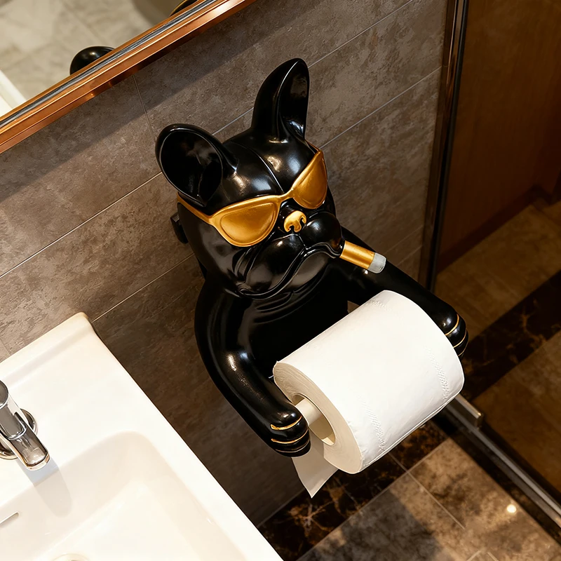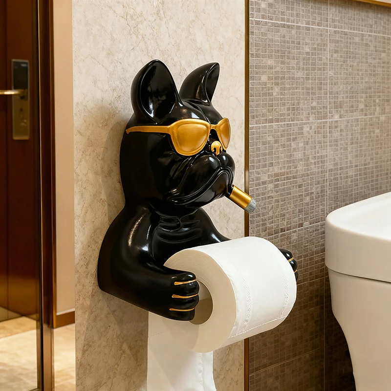 Creative French Bulldog Roll Paper Tube Bathroom Toilet Tissue Holder No Drilling Wall Mounted Storage Rack Decoration