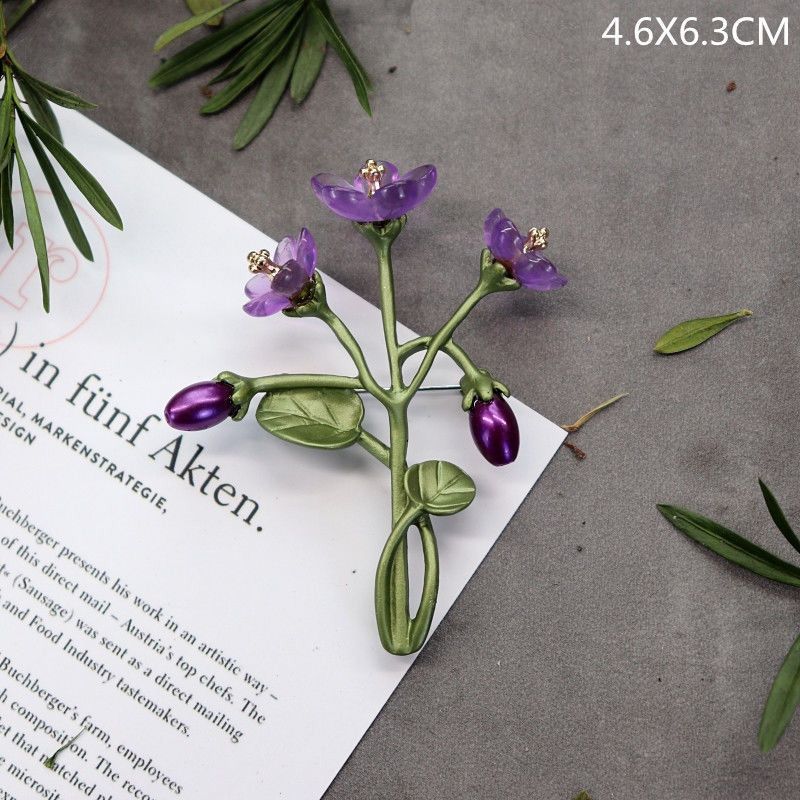 Creative Handmade Exquisite Green Plant Brooch Corsage Woman Retro Pearl Brooches Coat Accessories Jewelry