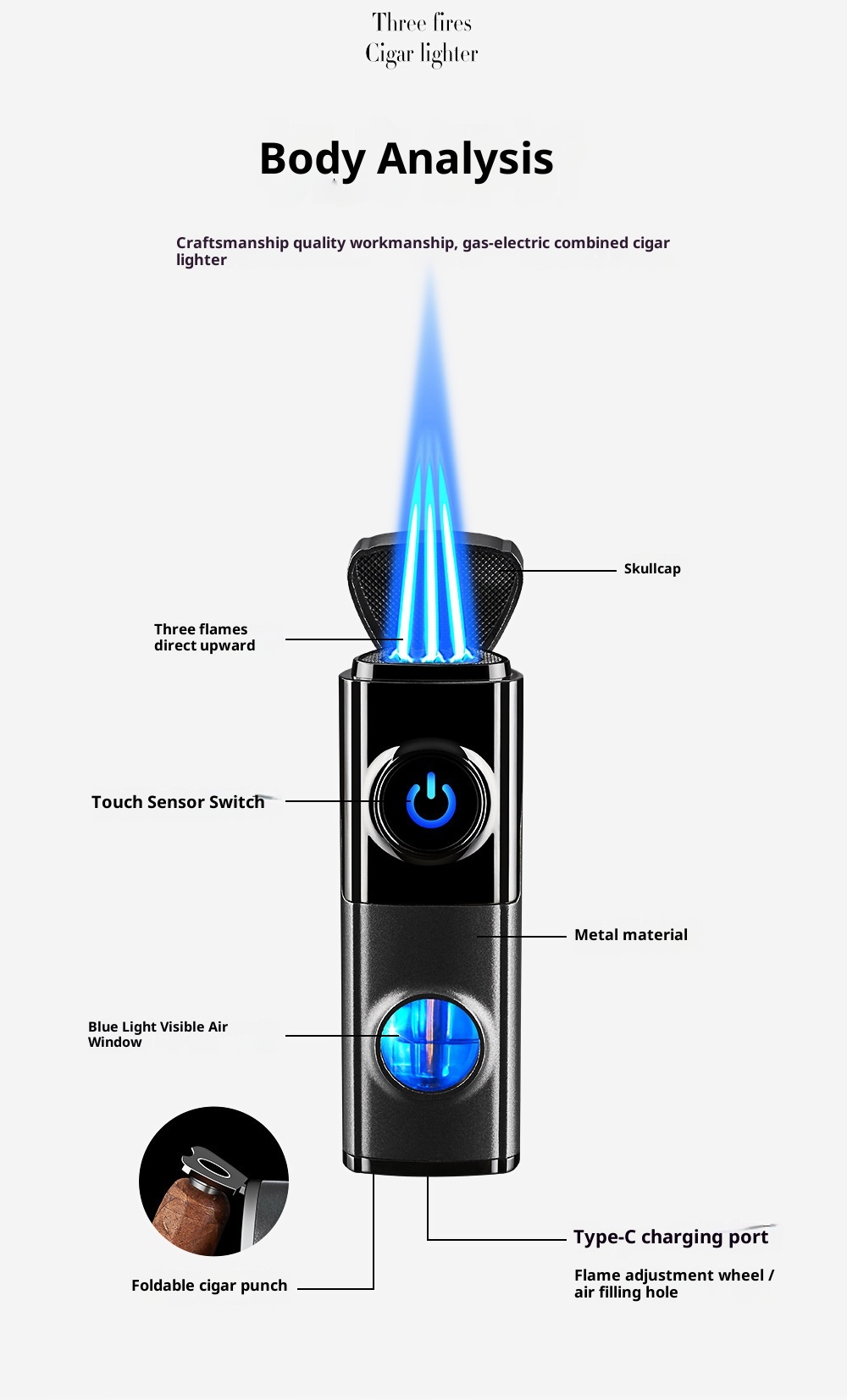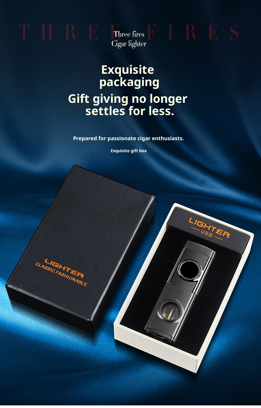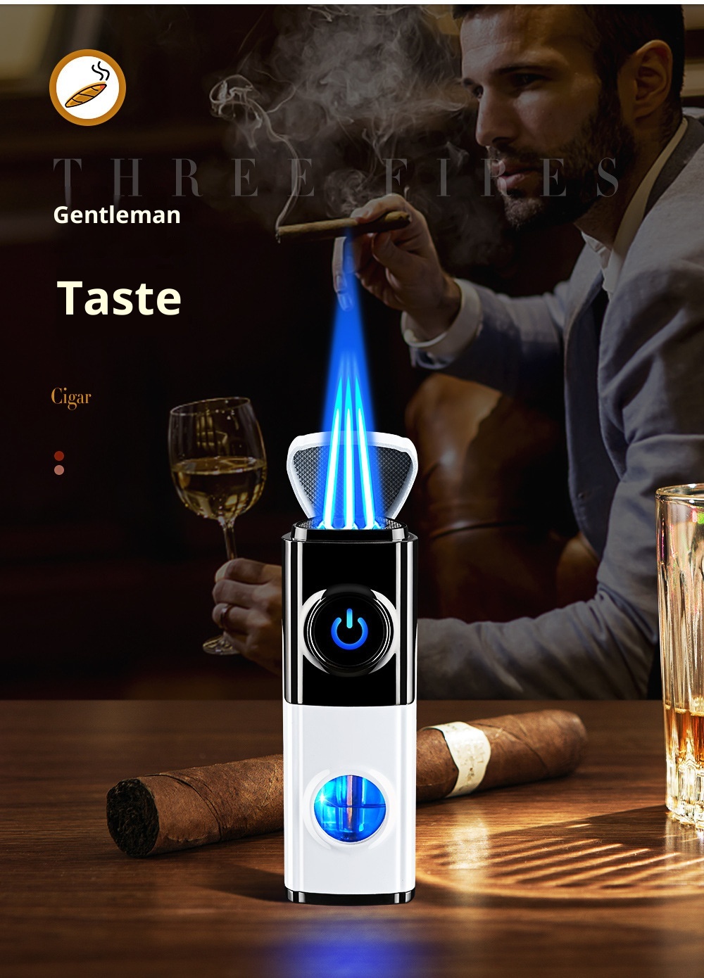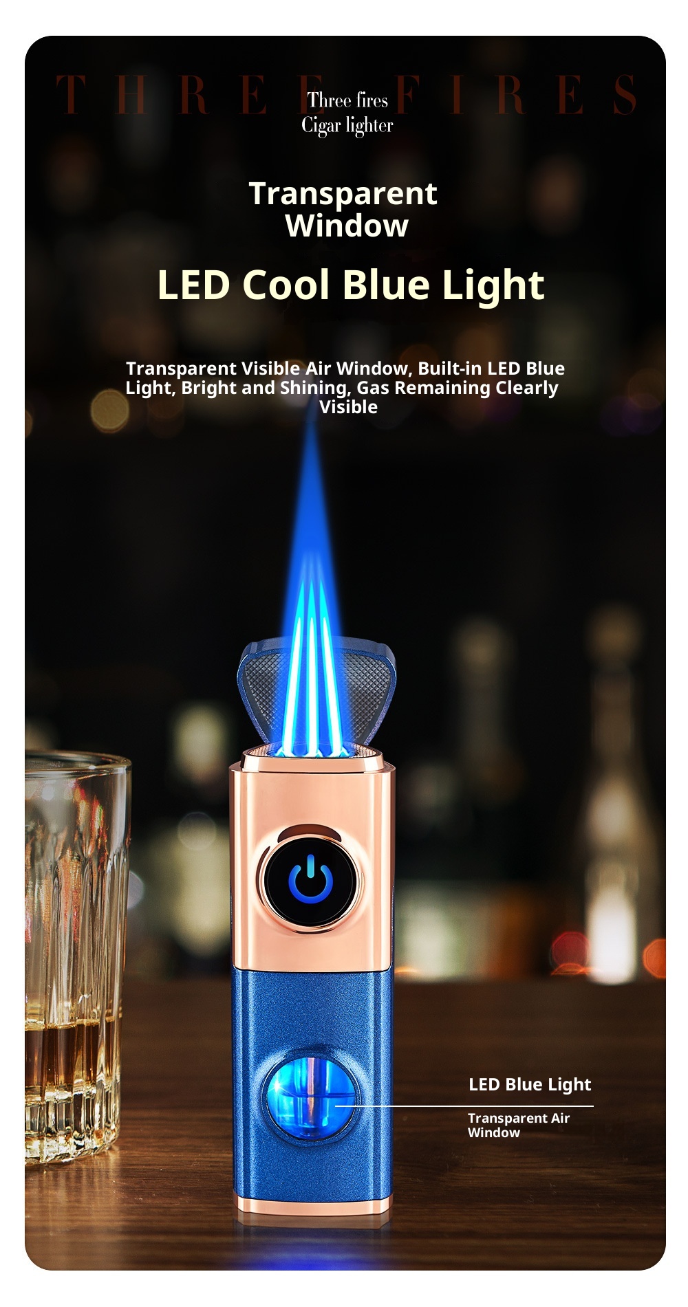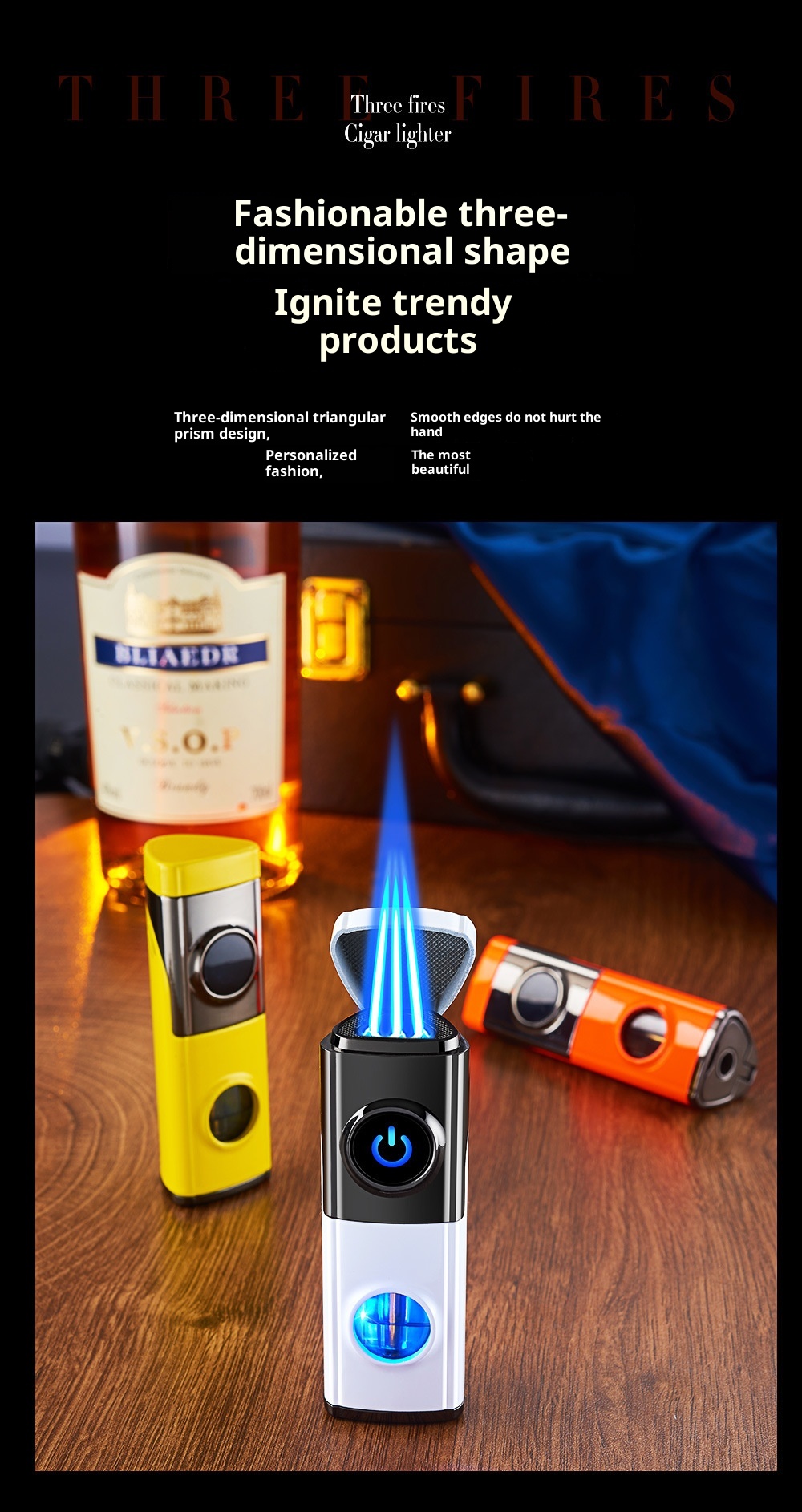 Creative Inflatable Direct-flame Portable Triple Torch Lighter For Cigars Lava Orange One Size