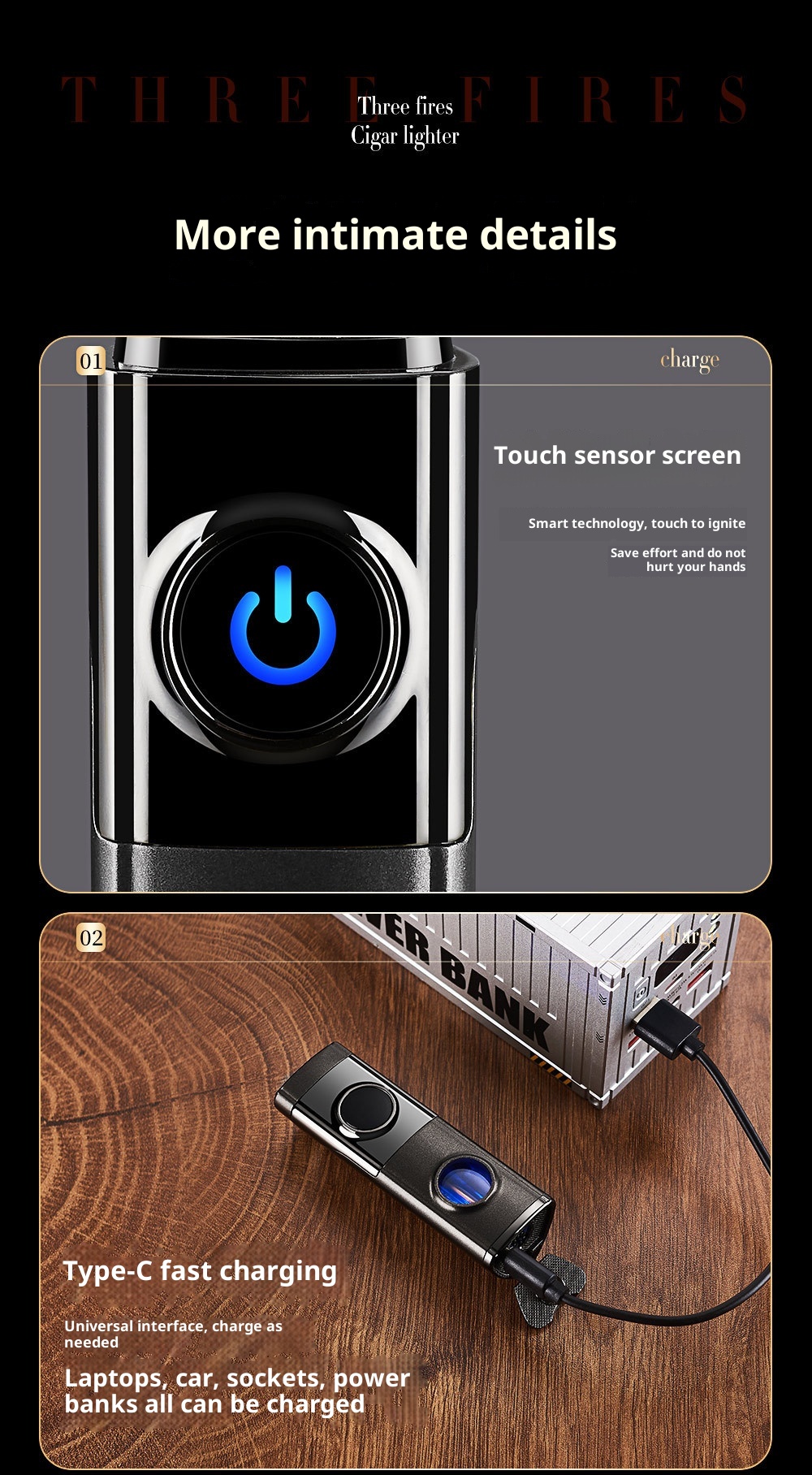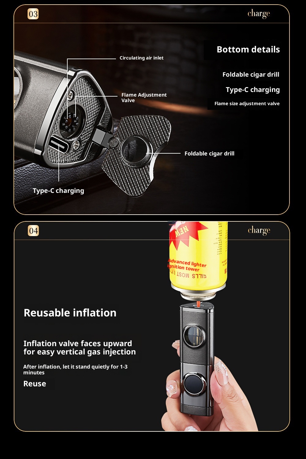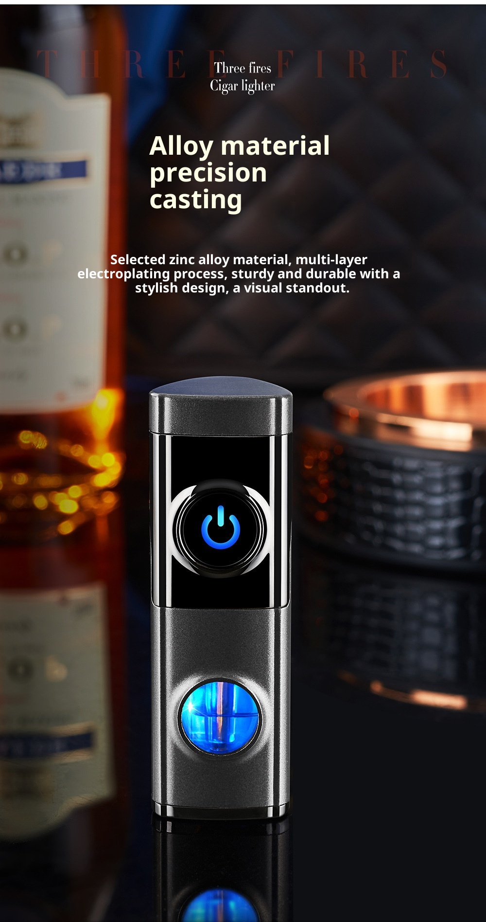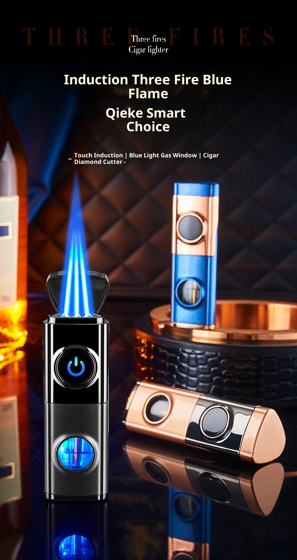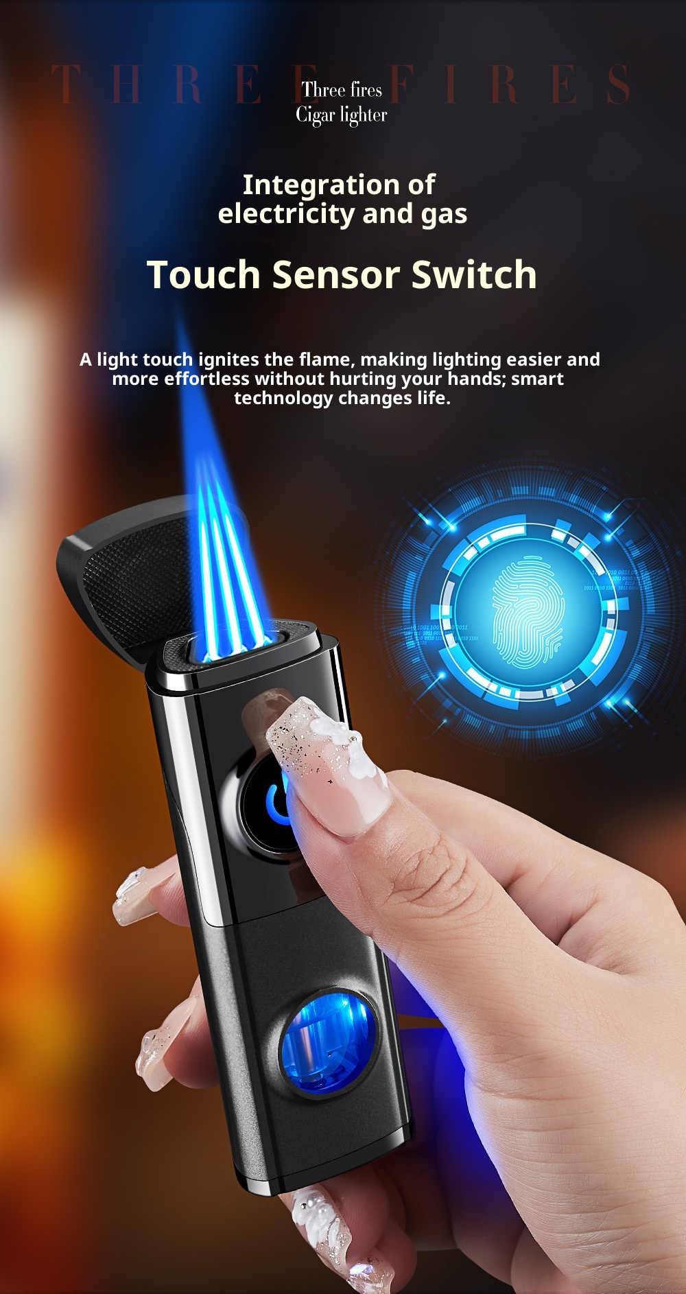 Creative Inflatable Direct-flame Portable Triple Torch Lighter For Cigars Lava Orange One Size