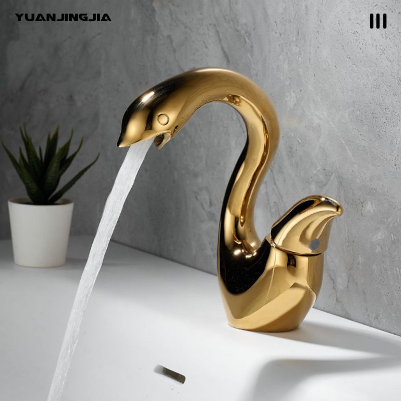 Creative Little Swan Basin Faucet Bathroom Vanity Cabinet Brass Single-Hole Sink Faucet Hot/Cold Anti-Splash Design