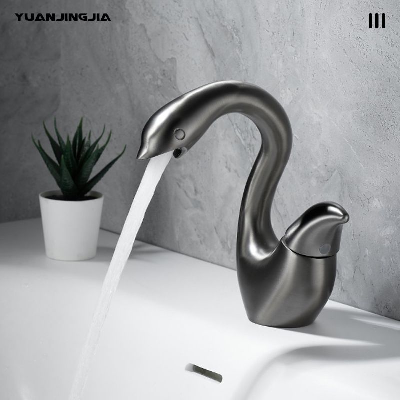 Creative Little Swan Basin Faucet Bathroom Vanity Cabinet Brass Single-Hole Sink Faucet Hot/Cold Anti-Splash Design