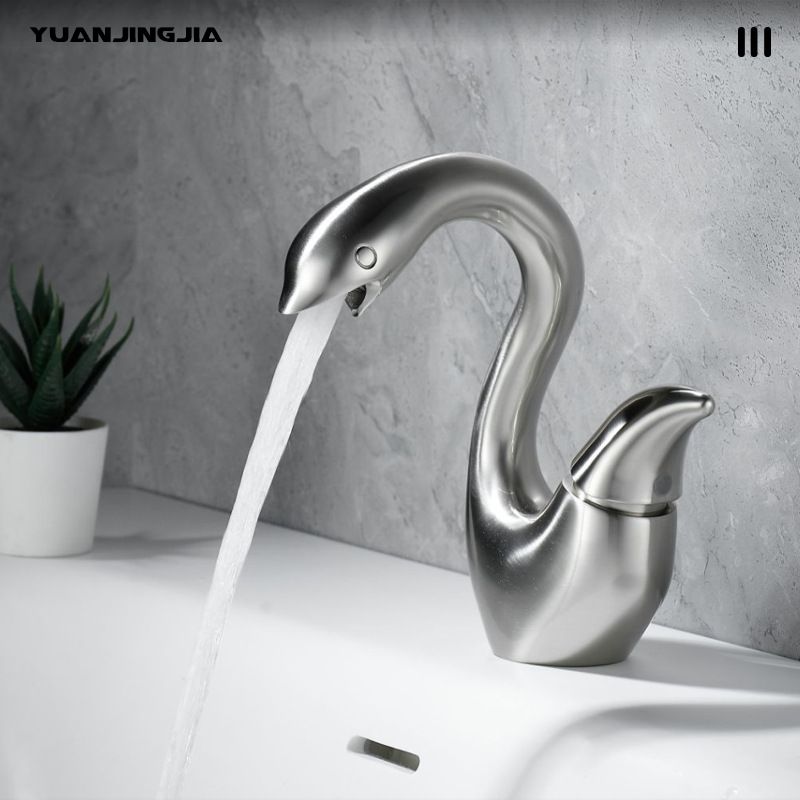 Creative Little Swan Basin Faucet Bathroom Vanity Cabinet Brass Single-Hole Sink Faucet Hot/Cold Anti-Splash Design