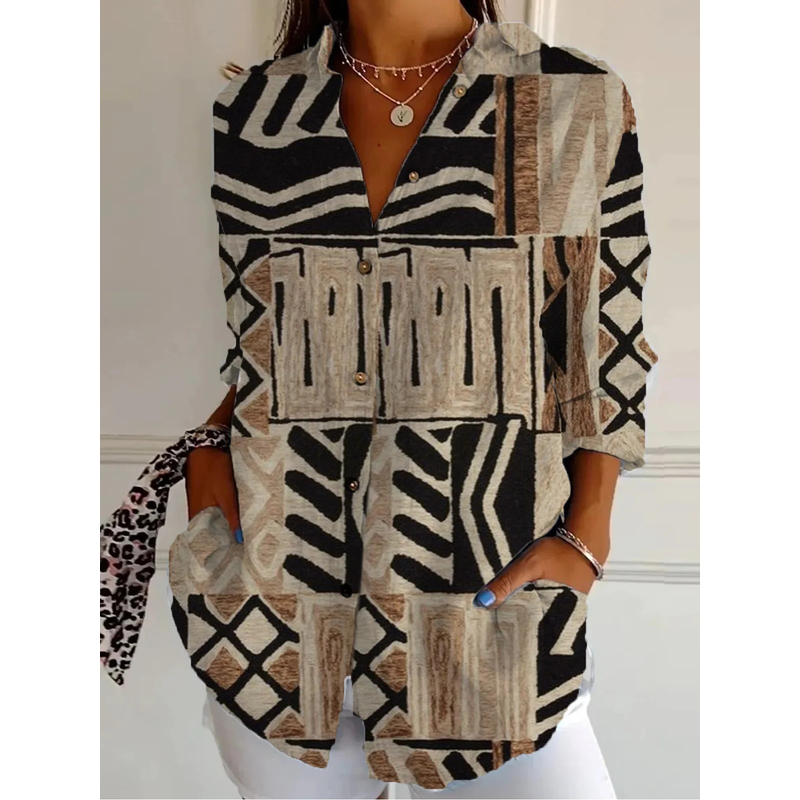 Creative Loose Print Women's Long-sleeved Button Shirt Style2 L