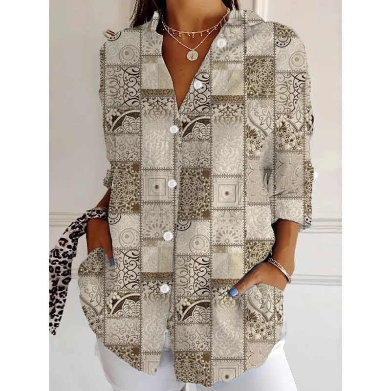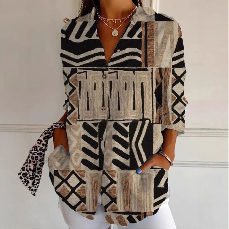 Creative Loose Print Women's Long-sleeved Button Shirt Style3 2XL