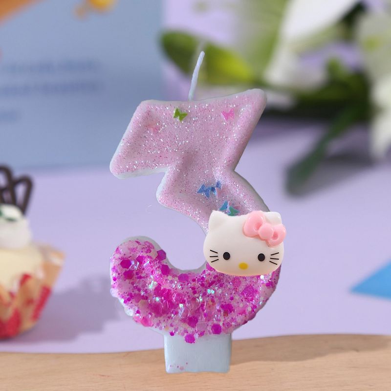Creative Pink Color Blocking Birthday Cake Candle Ambiance Decoration Hello Kitty Digital Candle
