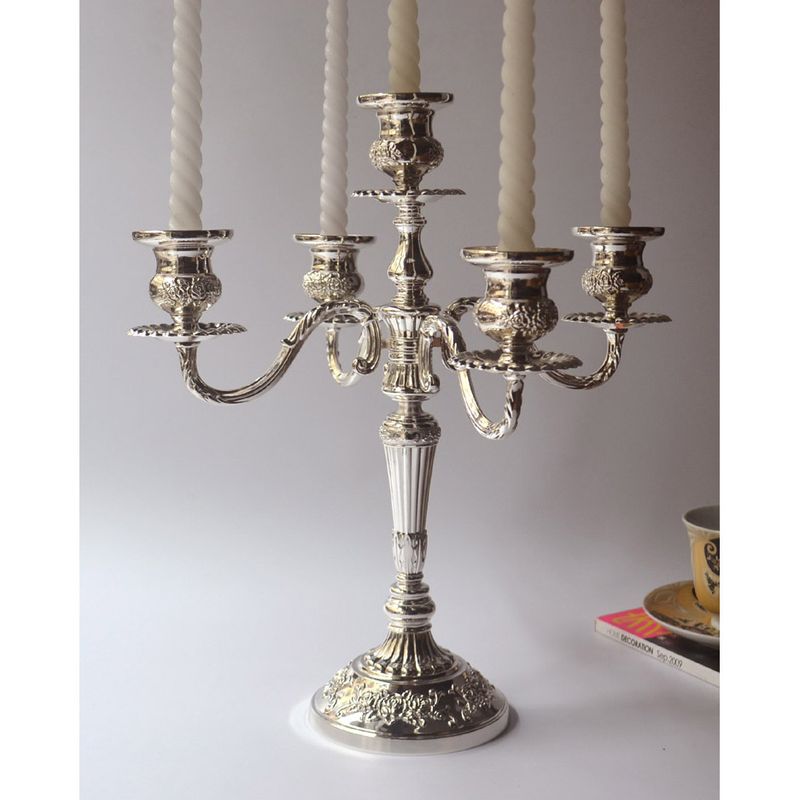 Creative Tall Silver Glod Candlestick Metal 5 Arm Candle Holders Retro Luxury Wedding Centerpieces Candlelight Dinner Gift FC420