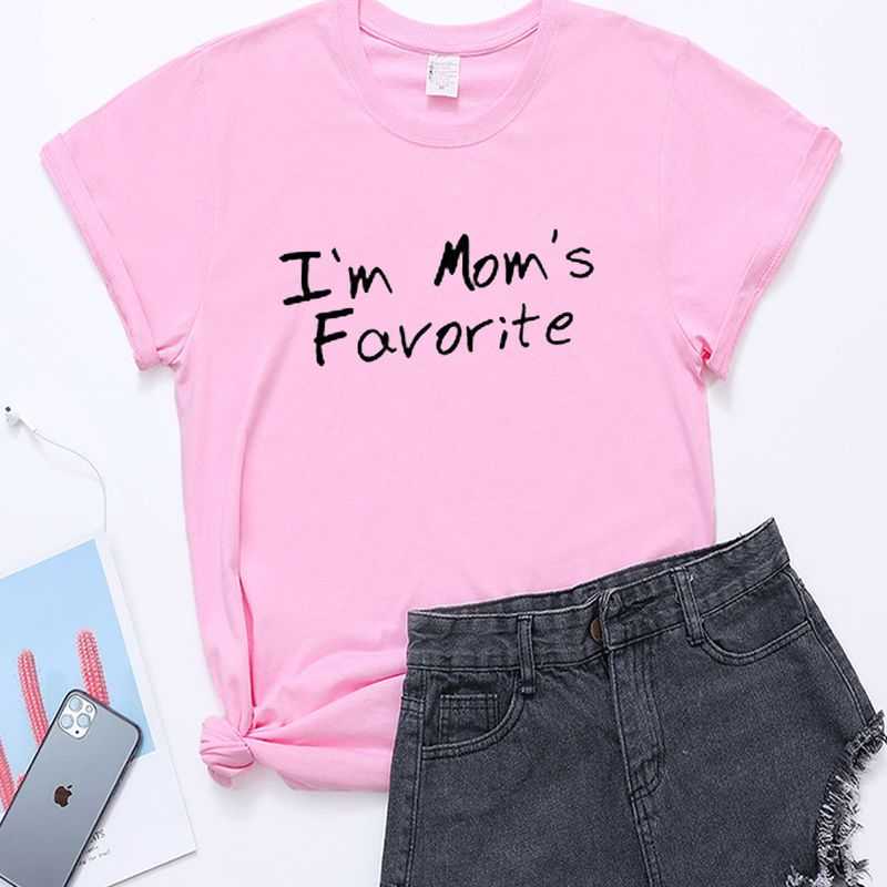 Crew Neck Printed Casual Short-sleeved T-shirt Pink M