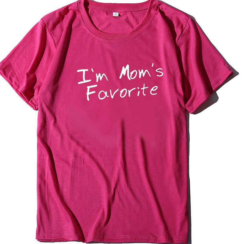 Crew Neck Printed Casual Short-sleeved T-shirt Rose Red L