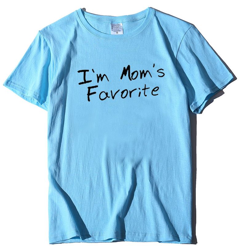 Crew Neck Printed Casual Short-sleeved T-shirt Sky Blue XL