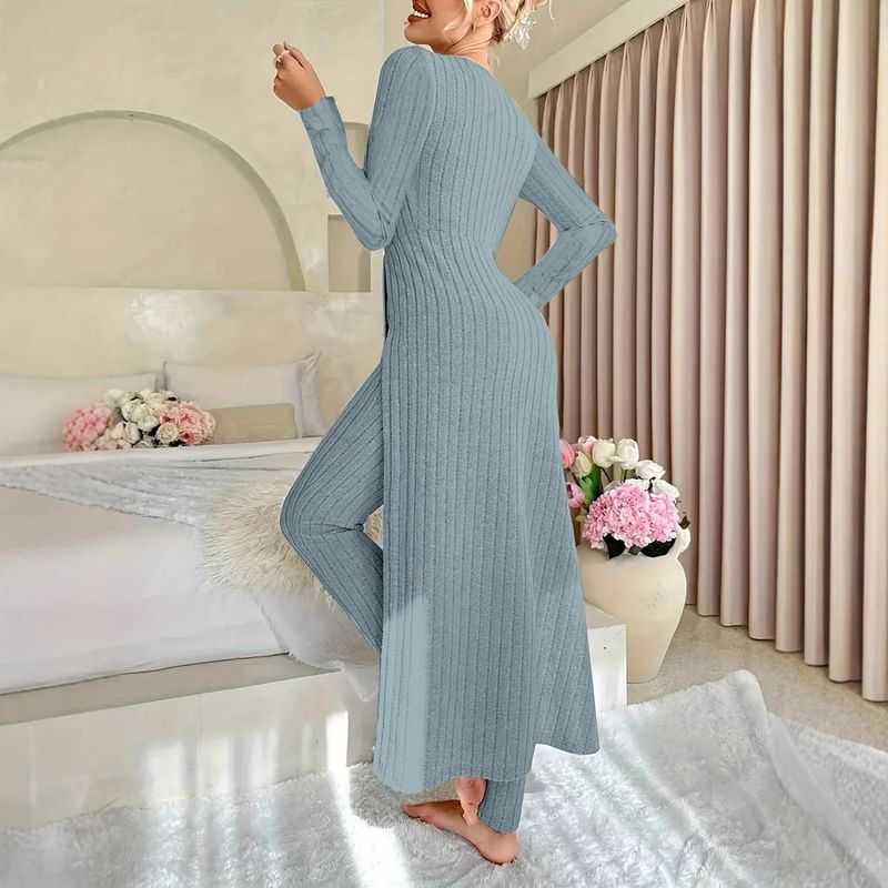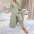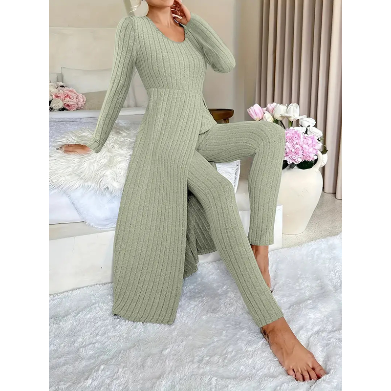 Crew Neck Split Long Sleeve Two-piece Set Gray S