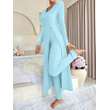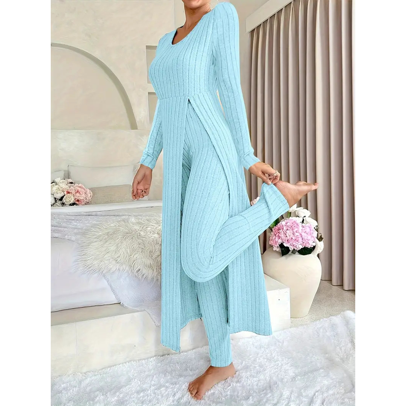 Crew Neck Split Long Sleeve Two-piece Set Sky Blue S