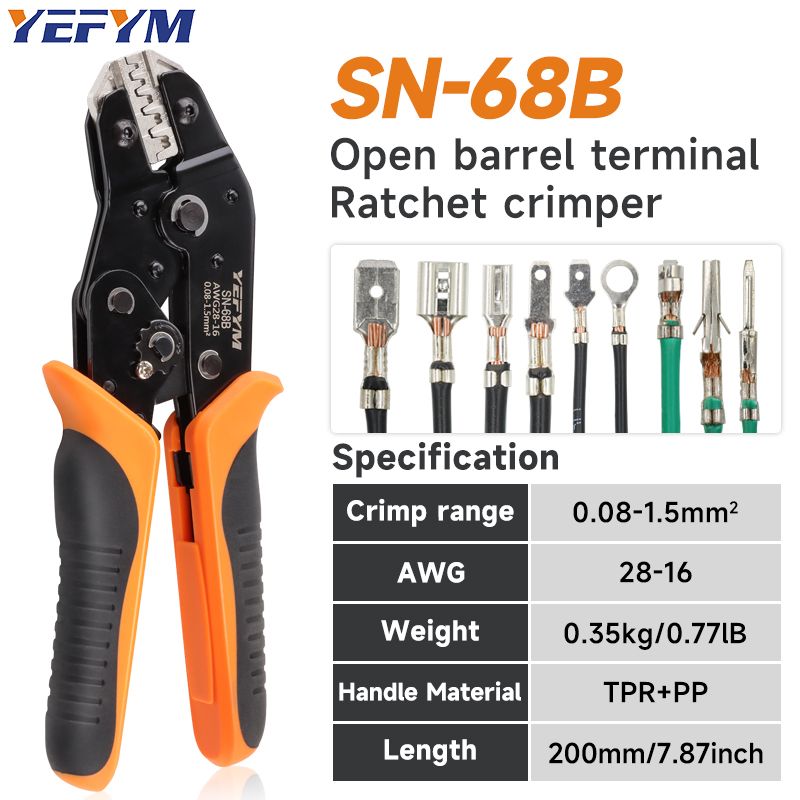 Crimps Plug JST ,TE,XH,SM,VH,PH,Molex Terminals Ratchet Crimper Pliers SN-68B For 0.08-1.5mm²(28-16 AWG) Wires Tool