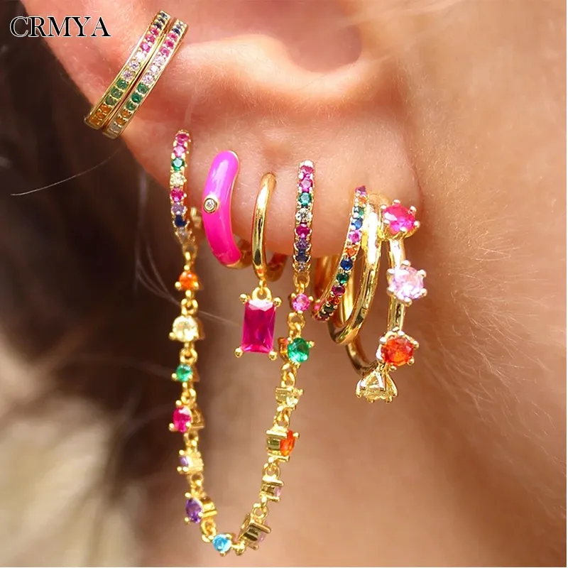 CRMYA Gold color Stud Earrings For Women Vintage Color CZ Zircon Piercing Women's Earrings 2022 Trend Jewelry Wholesale