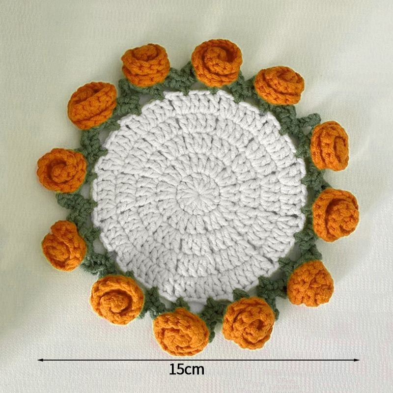 Crochet Flower Coaster Hand-knitted Lily Of The Valley Round Coasters Heat Insulation Non-slip Table Mats Home Kitchen Decor