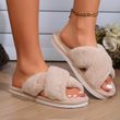 Cross Warm Fluffy Furry Slippers Women Lightweight Flat Heels Fur Slides Woman Autumn Winter Open Toe Non Slip Home Floor Shoes