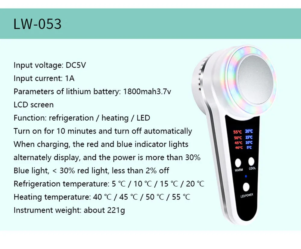 Cryotherapy Face Care Device Hot Cold Hammer Blue Photon Acne