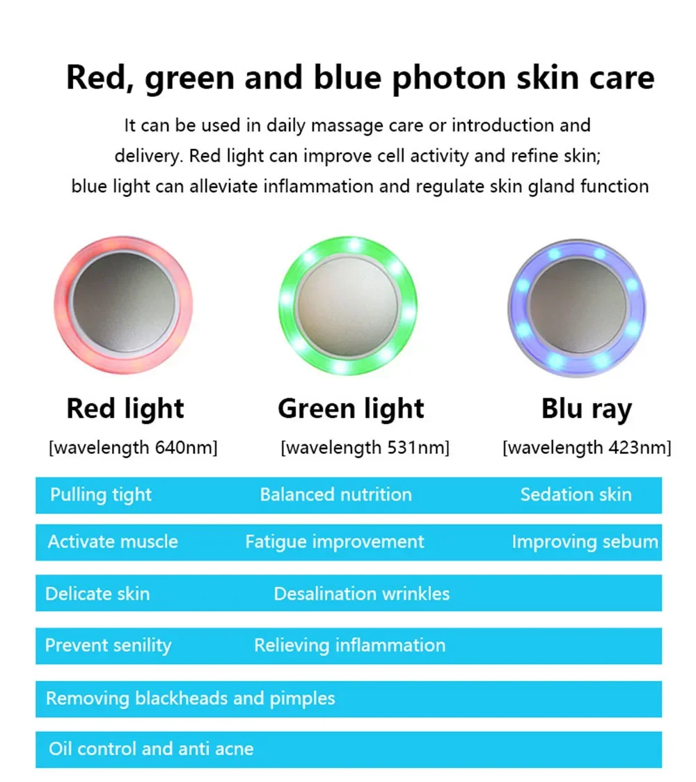 1.Red LED Light:anti-aging and skin-beauty, which can soften skin and restore skin's elasticity.