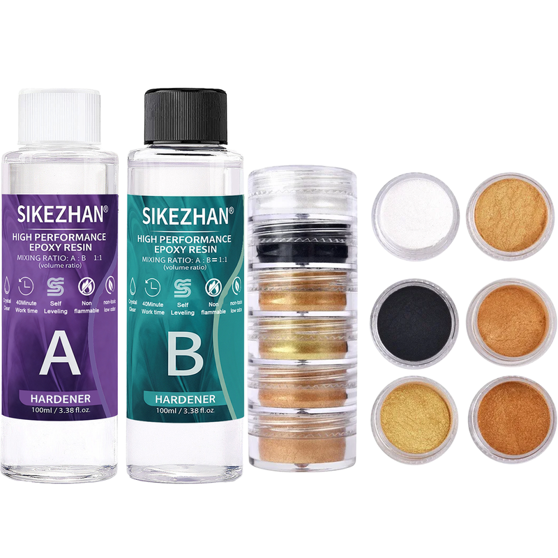 Crystal Clear Epoxy Resin Kit & 6 Colors Mica Powder, Bubble Free AB Glue for DIY Jewelry Making, Nail Art,Soap & Casting Crafts