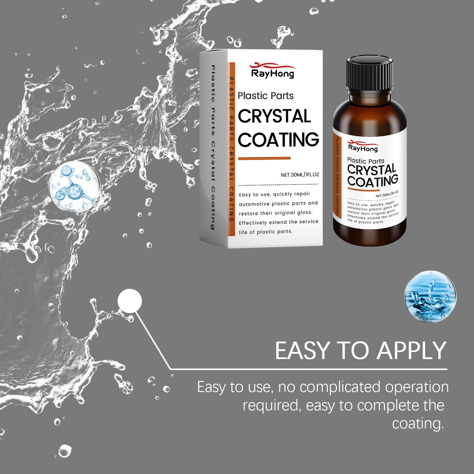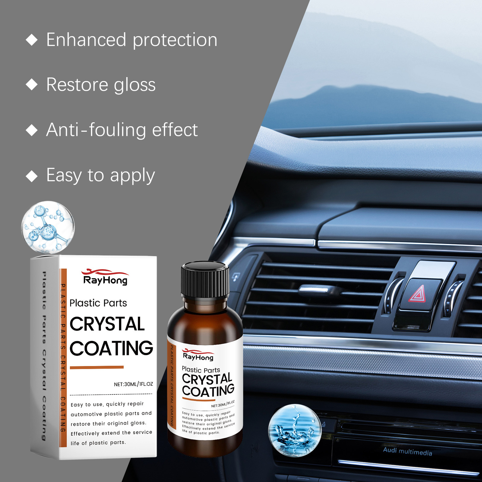 RAYHONG Crystal Coating for Car Scratch Repair Console Instrument Panel Care Great Gloss Protection Plastic Refurbished Plating Agent 30 ml/PC
