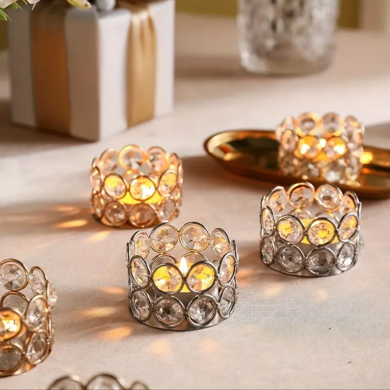 Crystal Tealight Candle Holder Gold Silver Metal Candlestick Table Centerpiece Home Wedding Decor Candle Lantern Ornament