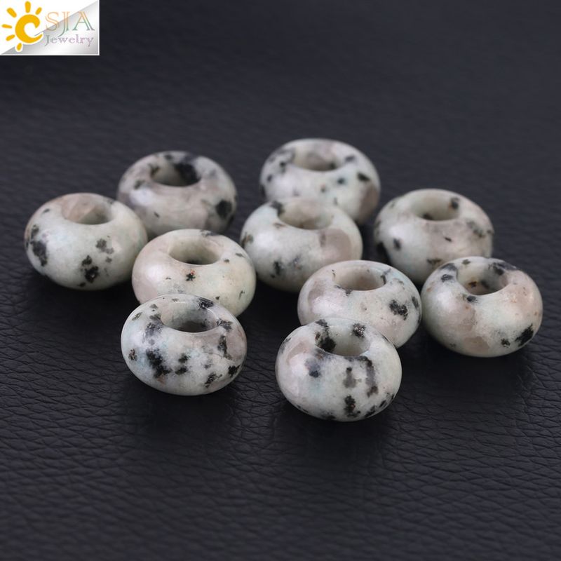CSJA Big Hole Beads for Jewelry Making Natural Stone 14mm Spacer Bead Women Men Bracelet Necklace Pendant Accessories 10pcs F423