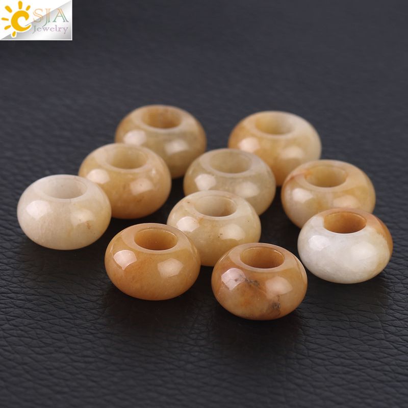 CSJA Big Hole Beads for Jewelry Making Natural Stone 14mm Spacer Bead Women Men Bracelet Necklace Pendant Accessories 10pcs F423