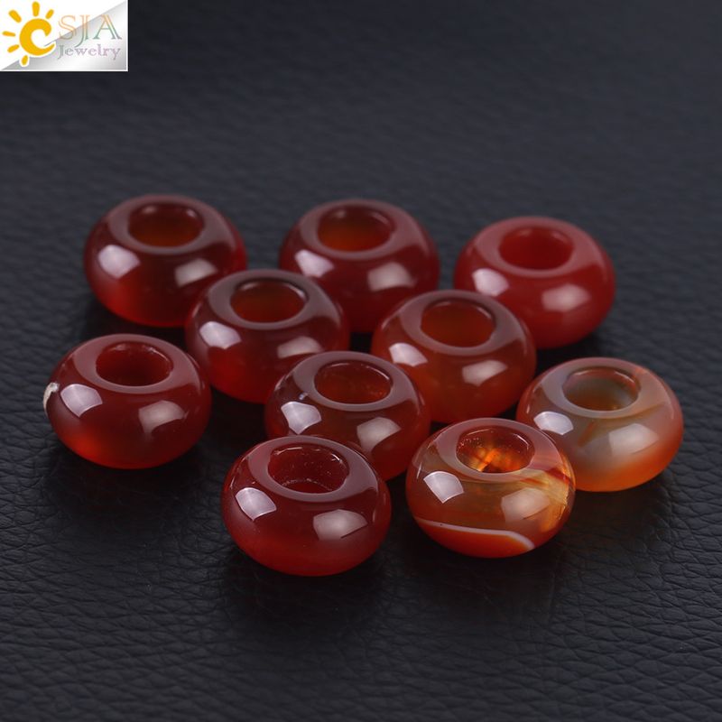CSJA Big Hole Beads for Jewelry Making Natural Stone 14mm Spacer Bead Women Men Bracelet Necklace Pendant Accessories 10pcs F423
