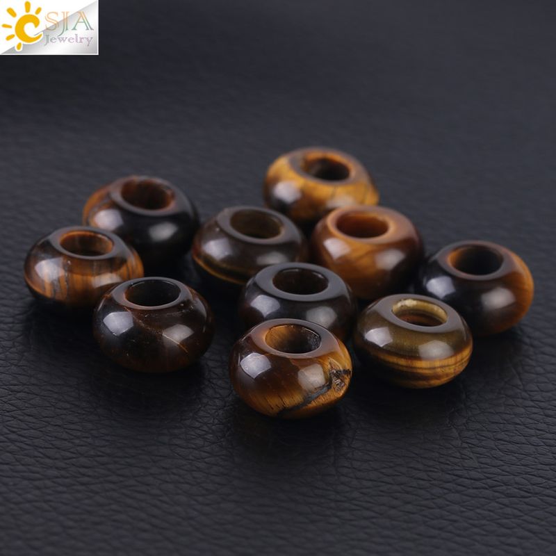 CSJA Big Hole Beads for Jewelry Making Natural Stone 14mm Spacer Bead Women Men Bracelet Necklace Pendant Accessories 10pcs F423