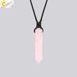 CSJA Vintage Man Necklace Natural Stone Hexagonal Point Pendant Healing Pink Quartz Crystal Necklaces Jewelry for Women H266