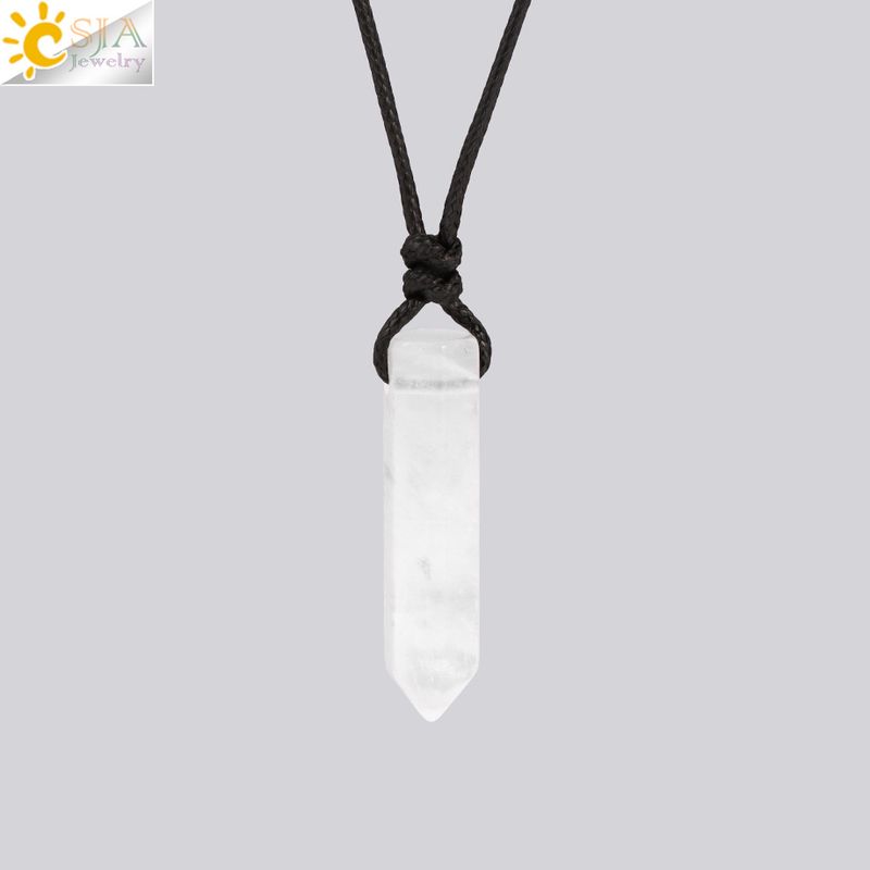 CSJA Natural Stone Hexagonal Point Pendant Crystal Necklace for Women Men Reiki Tiger Eye Black Obsidian White Necklaces H266