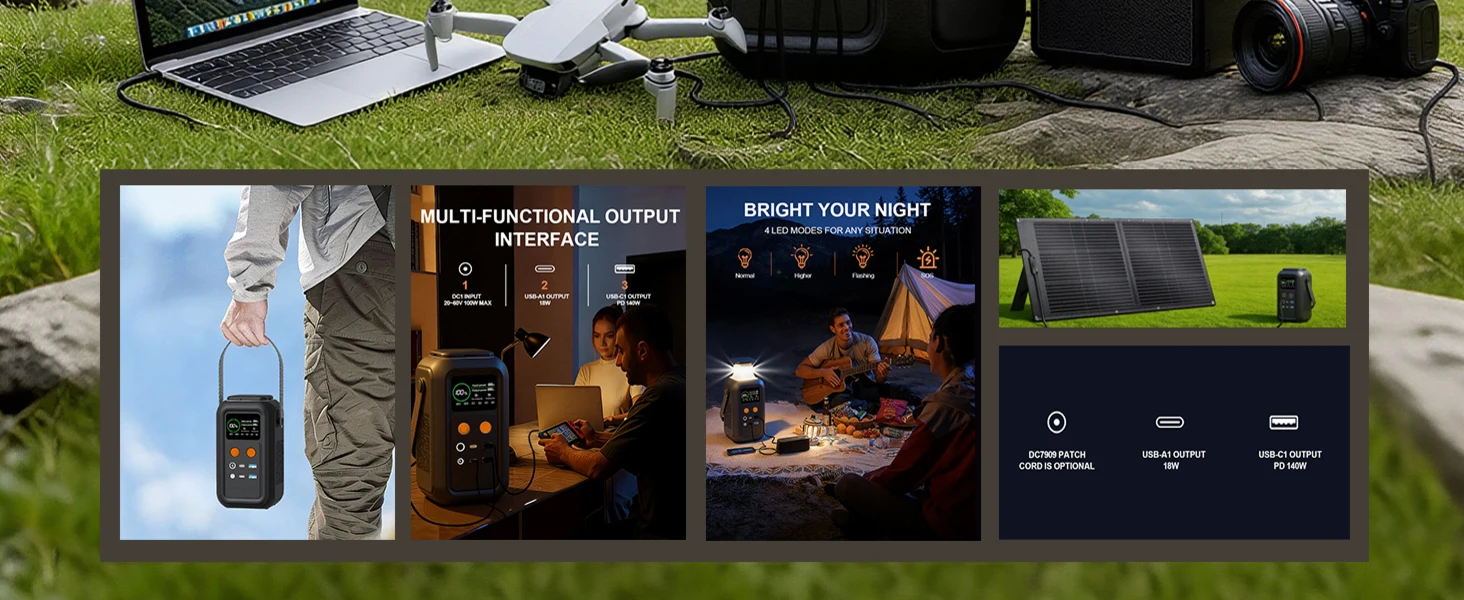 [Charge Multiple Devices Simultaneously]: Equipped with 5 ports: 1×140W two-way USB-C, 1×22.5W USB-C, and 2×18W USB-A, enabling you to charge your smartphone, laptop, and more at the same time. Ideal for outdoor adventures and daily needs.