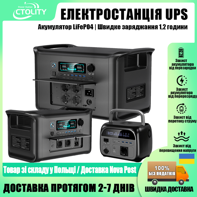 CTOLITY 500W-2400W Portable Solar 345Wh-2048Wh Lifepo4 Bottery Generator Camping Power Station UPS Function Emergency Supply