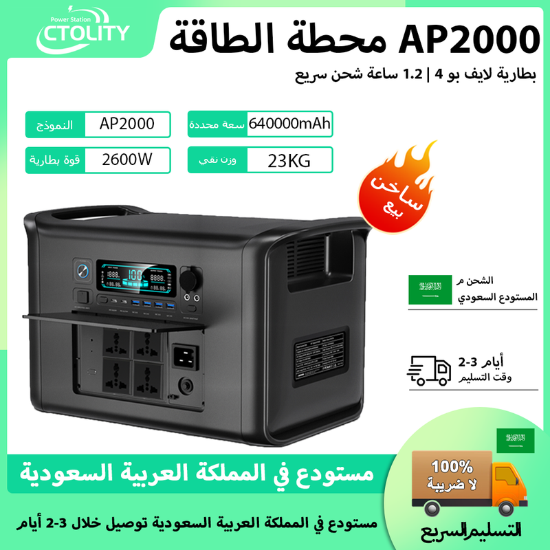 CTOLITY 500W-2400W Portable Solar 345Wh-2048Wh Lifepo4 Bottery Generator Camping Power Station UPS Function Emergency Supply